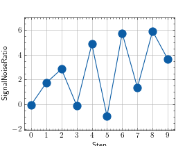 >>> # Example plotting multiple values >>> import torch >>> from torchmetrics.audio import SignalNoiseRatio >>> metric = SignalNoiseRatio() >>> values = [ ] >>> for _ in range(10): ... values.append(metric(torch.rand(4), torch.rand(4))) >>> fig_, ax_ = metric.plot(values)