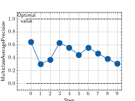 >>> # Example plotting multiple values >>> import torch >>> from torchmetrics.classification import MulticlassAveragePrecision >>> metric = MulticlassAveragePrecision(num_classes=3) >>> values = [ ] >>> for _ in range(10): ... values.append(metric(torch.randn(20, 3), torch.randint(3, (20,)))) >>> fig_, ax_ = metric.plot(values)