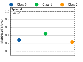 >>> from torch import randint >>> # Example plotting a single value per class >>> from torchmetrics.classification import MulticlassF1Score >>> metric = MulticlassF1Score(num_classes=3, average=None) >>> metric.update(randint(3, (20,)), randint(3, (20,))) >>> fig_, ax_ = metric.plot()
