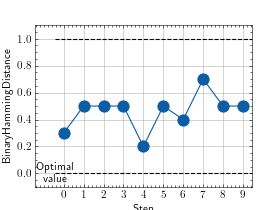 >>> # Example plotting multiple values >>> from torch import rand, randint >>> from torchmetrics.classification import BinaryHammingDistance >>> metric = BinaryHammingDistance() >>> values = [ ] >>> for _ in range(10): ... values.append(metric(rand(10), randint(2,(10,)))) >>> fig_, ax_ = metric.plot(values)