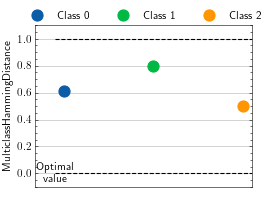 >>> # Example plotting a single value per class >>> from torch import randint >>> from torchmetrics.classification import MulticlassHammingDistance >>> metric = MulticlassHammingDistance(num_classes=3, average=None) >>> metric.update(randint(3, (20,)), randint(3, (20,))) >>> fig_, ax_ = metric.plot()