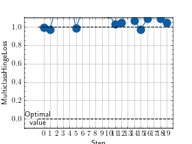 >>> # Example plotting a multiple values per class >>> from torch import randint, randn >>> from torchmetrics.classification import MulticlassHingeLoss >>> metric = MulticlassHingeLoss(num_classes=3) >>> values = [] >>> for _ in range(20): ... values.append(metric(randn(20, 3), randint(3, (20,)))) >>> fig_, ax_ = metric.plot(values)