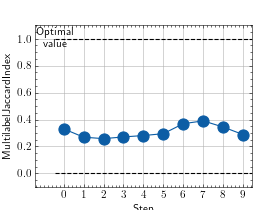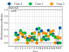 >>> # Example plotting multiple values >>> from torch import rand, randint >>> from torchmetrics.classification import MultilabelJaccardIndex >>> metric = MultilabelJaccardIndex(num_labels=3) >>> values = [ ] >>> for _ in range(10): ... values.append(metric(randint(2, (20, 3)), randint(2, (20, 3)))) >>> fig_, ax_ = metric.plot(values)