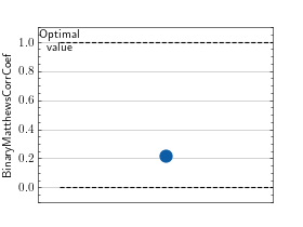>>> from torch import rand, randint >>> # Example plotting a single value >>> from torchmetrics.classification import BinaryMatthewsCorrCoef >>> metric = BinaryMatthewsCorrCoef() >>> metric.update(rand(10), randint(2,(10,))) >>> fig_, ax_ = metric.plot()