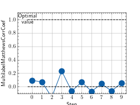 >>> from torch import rand, randint >>> # Example plotting multiple values >>> from torchmetrics.classification import MultilabelMatthewsCorrCoef >>> metric = MultilabelMatthewsCorrCoef(num_labels=3) >>> values = [ ] >>> for _ in range(10): ... values.append(metric(randint(2, (20, 3)), randint(2, (20, 3)))) >>> fig_, ax_ = metric.plot(values)