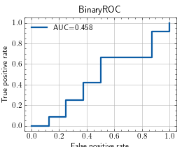 >>> from torch import rand, randint >>> from torchmetrics.classification import BinaryROC >>> preds = rand(20) >>> target = randint(2, (20,)) >>> metric = BinaryROC() >>> metric.update(preds, target) >>> fig_, ax_ = metric.plot(score=True)