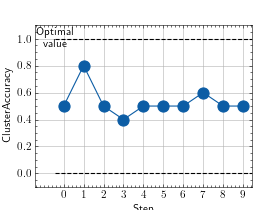 >>> # Example plotting multiple values >>> import torch >>> from torchmetrics.clustering import ClusterAccuracy >>> metric = ClusterAccuracy(num_classes=4) >>> values = [ ] >>> for _ in range(10): ... values.append(metric(torch.randint(0, 4, (10,)), torch.randint(0, 4, (10,)))) >>> fig_, ax_ = metric.plot(values)