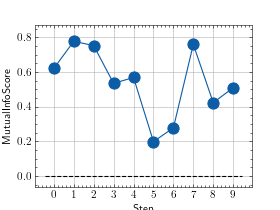 >>> # Example plotting multiple values >>> import torch >>> from torchmetrics.clustering import MutualInfoScore >>> metric = MutualInfoScore() >>> values = [ ] >>> for _ in range(10): ... values.append(metric(torch.randint(0, 4, (10,)), torch.randint(0, 4, (10,)))) >>> fig_, ax_ = metric.plot(values)