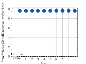 >>> # Example plotting multiple values >>> from torch import rand >>> from torchmetrics.image import ErrorRelativeGlobalDimensionlessSynthesis >>> preds = rand([16, 1, 16, 16]) >>> target = preds * 0.75 >>> metric = ErrorRelativeGlobalDimensionlessSynthesis() >>> values = [ ] >>> for _ in range(10): ... values.append(metric(preds, target)) >>> fig_, ax_ = metric.plot(values)