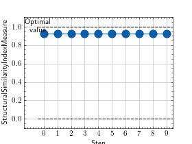 >>> # Example plotting multiple values >>> import torch >>> from torchmetrics.image import StructuralSimilarityIndexMeasure >>> preds = torch.rand([3, 3, 256, 256]) >>> target = preds * 0.75 >>> metric = StructuralSimilarityIndexMeasure(data_range=1.0) >>> values = [ ] >>> for _ in range(10): ... values.append(metric(preds, target)) >>> fig_, ax_ = metric.plot(values)